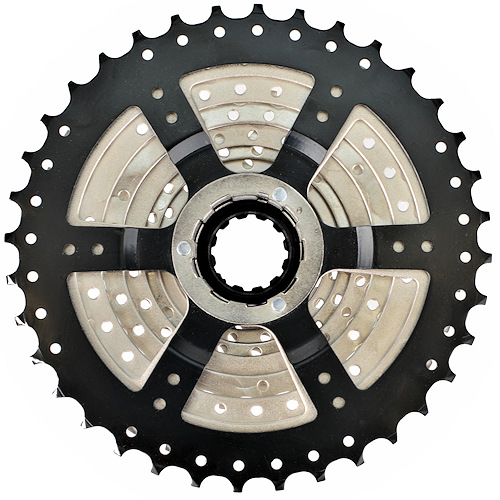 Największe zębatki mocowane są na aluminiowym pająku dzięki czemu kaseta