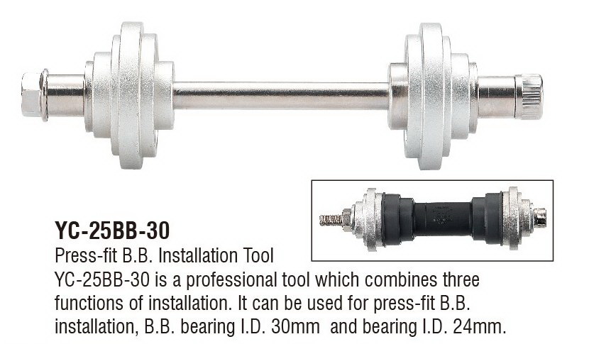 • prasa serwisowa do montażu wciskanych łożysk suportu: Press Fit BB86/91, BB30 • oś wykonana ze stali narzędziowej, nakładki z utwardzonego aluminium • średnica osi: 9,8mm • średnica nakładki od strony BB30: 29,9/41,9/50mm • średnica nakładki od strony BB86/92: 23,9/42,9/50mm • do obsługi wykorzystuje się narzędzia: płaski 17mm, imbus 8 mm • waga: 309 g. • pakowanie: zawieszka Prox