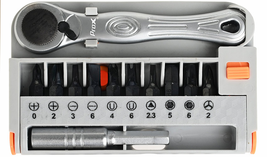 Klucz prox grzechotka kit-15 kieszonkowa 105mm, przedłużka, bity