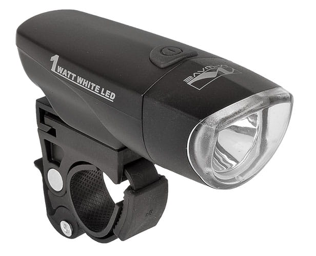 • lampa przednia kolor czarny • 1super mocna 1wat dioda LED • w komplecie uchwyt do montażu na kierownicy • czas świecenia 150 h; na baterie 3 x AAA • pakowanie: blister • waga: 100 g.