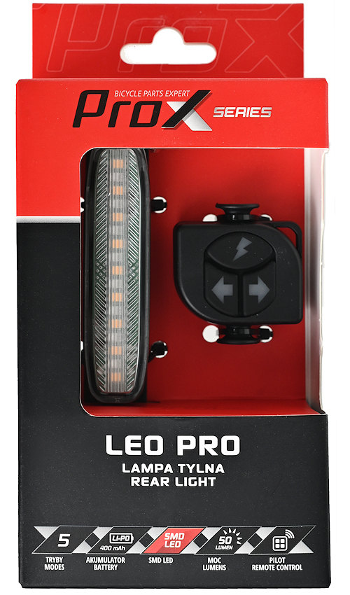 Lampa tył prox leo pro 50lm,400mah, usb-c, pilot, kierunkowskaz, brake