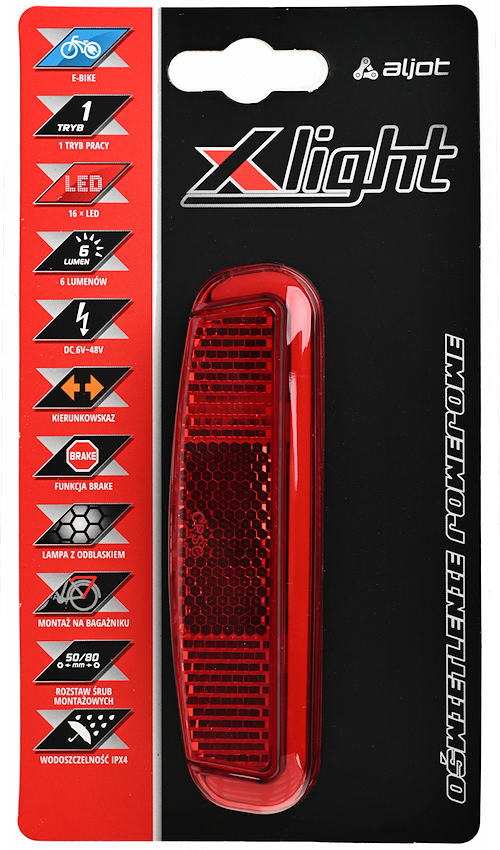 Lampa tył x-light na bagażnik e-bike xc-2329 16 led 6lm dc6-48v