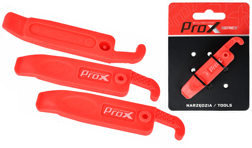 • mocne łyżki do zdejmowania opon • plastikowe o długości 100 x 19mm • z zaczepem na szprychę • komplet 3 szt. • waga: 28g • pakowanie: zawieszka ProX (50g)