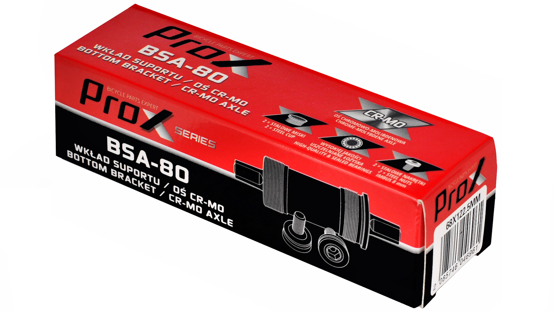 Oś suportu prox bsa-80 122.5mm cr-mo nakrętki stal