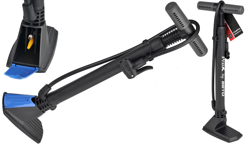 • lekka pompka podłogowa • wykonana z tworzywa, igły do pompowania piłek w komplecie • blokowana podwójna głowica AV/FV_DV • wysokość 485 mm. • długość wężyka 570 mm • waga 575 g.