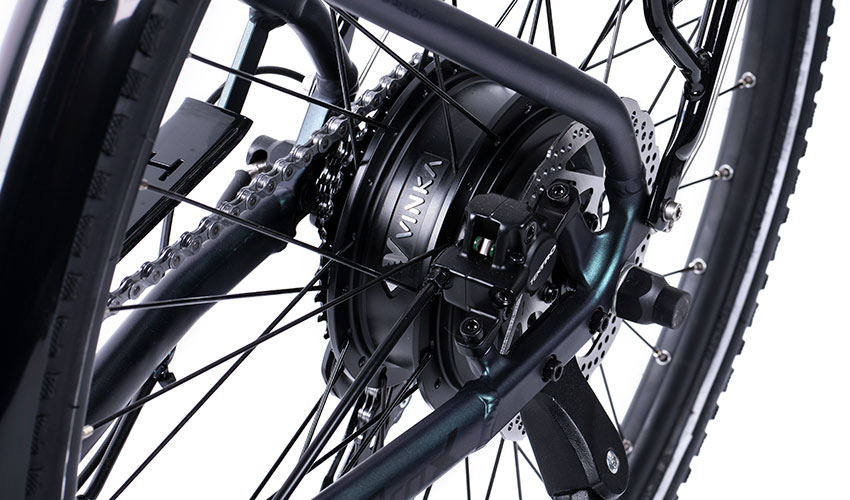 •Silnik: VINKA RH40C,bezszczotkowy i bezhalogenowy silnik tylnej piasty, 36Vx250W, magnetyczny czujnik prędkości