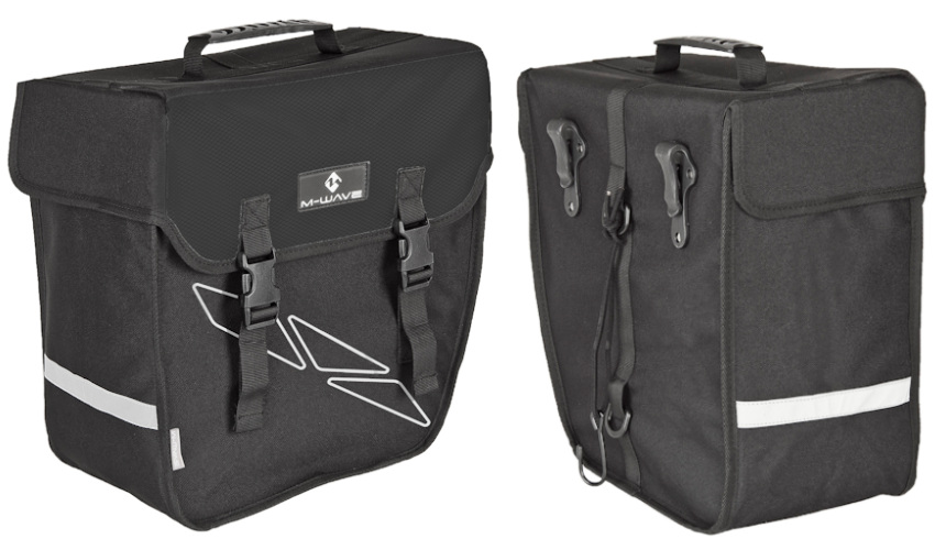 • sakwa montowana na bok bagażnika • prawa, kolor czarny • wymiary: 38 x 18 x 30 cm • objętość ok. 18 Litrów • duża torba z zamknięciami • odblaskowe paski, rączka • szybki montaż na 2 zaczepy i jedną elastyczną opaską
