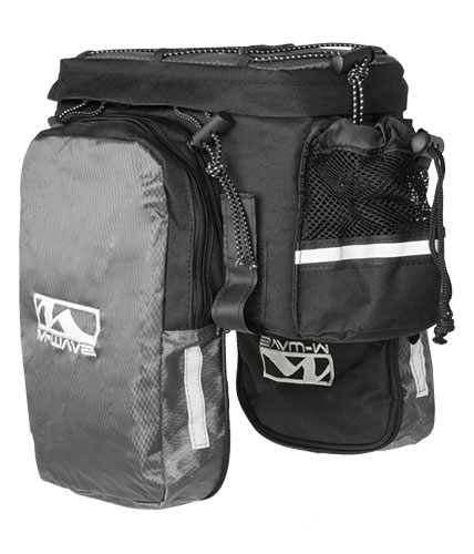 • sakwa rowerowa na bagażnik, materiał nieprzemakalny • dwie dodatkowe komory boczne • kieszeń na bidon • pasek do noszeniu na ramieniu • paski odblaskowe • waga: 470 g.