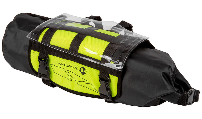 • turystyczna sakwa na kierownicę • min. do Bikepackingu 100% wodoodporny • tkanina RIP STOP gwarantuje wysoką wytrzymałość na rozciąganie • wodoodporna podszewka wewnętrzna • regulowany, rolowany worek zapinany jest za pomocą klamry • mocowanie na kierownicy za pomocą pasków z klamrami • odpinana przezroczysta przegroda na mapy