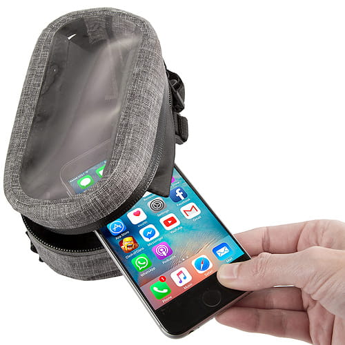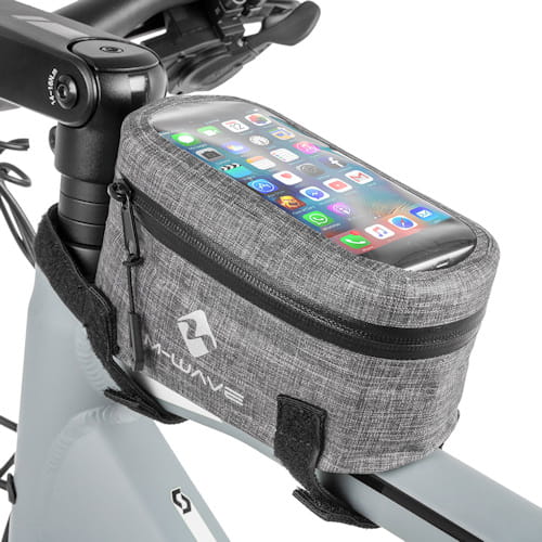 • montaż do ramy za pomocą 3 rzepów • wzmocnione dno sakwy • zamek wodoszczelny • uszczelniona komora z transparentnym okienkiem zabezpieczona jest przed deszczem • materiał zapewnia 100 % ochronę przed deszczem • na bokach odblaskowe logo M-WAVE • pasuje do wszystkich popularnych smartfonów • wielkość: (LxWxH) 185x95x85 mm.