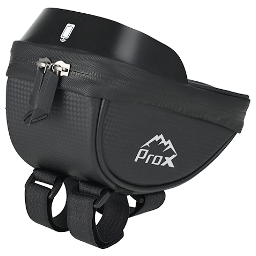 • sakwa na mostek/kierownicę z kieszenią na telefon • na telefon z ekranem do 6,4 cala • daszek zacieniający • 3-punktowe mocowanie za pomocą pasków na rzep • pokrowiec na telefon z osłoną zacieniającą • uszczelniony zamek z dwoma suwakami • wzmocnione dno sakwy • materiał: poliester TPU / PVC • wymiary: 18,5 x 10,5 x 8,5 cm • waga: 115g, pojemność: 1l • pakowanie: woreczek strunowy PP, etykieta ProX (125g)
