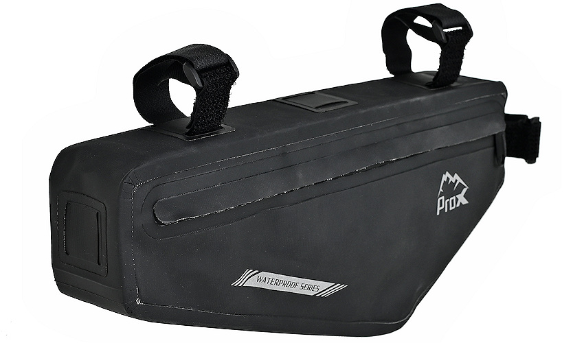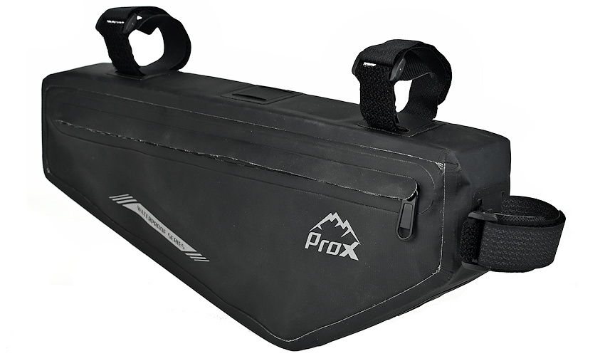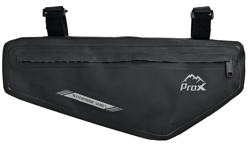 • sakwa trójkątna montowana pod ramę, WATERPROOF SERIES • montaż za pomocą trzech pasków na rzep • ergonomiczny kształt • wykonana z 100 % nieprzemakalnego materiału • materiał: Poliester 600D, tkaniana z powłoką PVC + PU • wymiary: 36 x 15,5 x 5,5 cm cm • waga: 189g • pojemność: 2l • pakowanie: worek PP, etykieta ProX