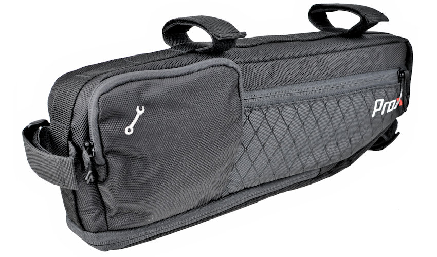 • sakwa pod ramę, wodoodporna • montowana w ramie za pomocą trzech regulowanych pasków na rzep • jednokomorowa z możliwością powiększenia, dwie dodatkowe kieszenie po jednej stronie otwierana zamkami YKK • wykonana z nieprzemakalnego materiału: 1500D polyester • wielkość komory łatwo można dostosować do ilości bagażu • wielkość: 380x130/215x60 mm, waga: 219 g.
