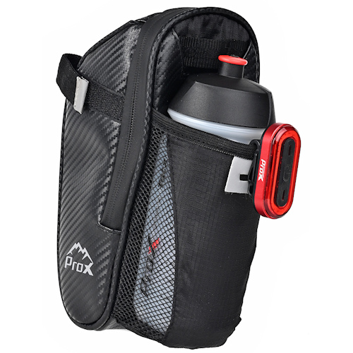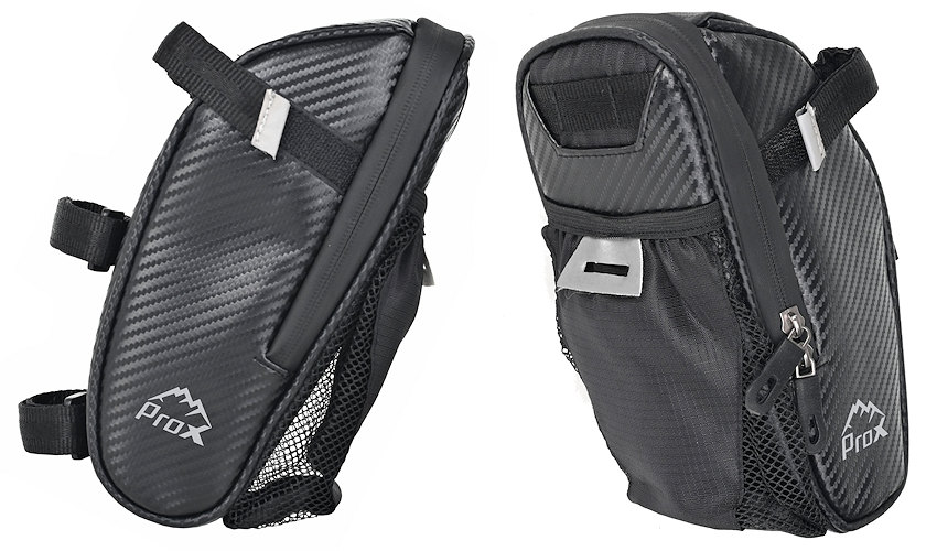 • sakwa podsiodłowa • montowana na cztery paski na rzepem • ergonomiczny kształt z jedną dużą komorą z wewnętrznymi kieszeniami • zewnętrzna kieszeń z siatki na bidon • posiada szlufkę na tylna lampę • wykończenie odblaskowe • materiał: poliuretan / PU (faktura karbonu) • wymiary: 24 x 10 x 8 cm • waga: 215g, pojemność: 1,5l • pakowanie: worek PP, etykieta ProX (189g)
