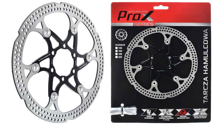 • tarcza hamulcowa, sposób mocowania 6 śrub • materiał: stal nierdzewna, utwardzona • materiał powierzchni roboczej: stal nierdzewna 42HRC • pająk wykonany z aluminium 7075 metodą CNC • łączenie: nity wykonane ze stali nierdzewnej • sposób takiego łączenia optymalnie odprowadza ciepło • kolor wykończenia: czarny • 6 czarnych śrub montażowych T25 w komplecie • pakowanie zawieszka ProX, waga: 130 g.