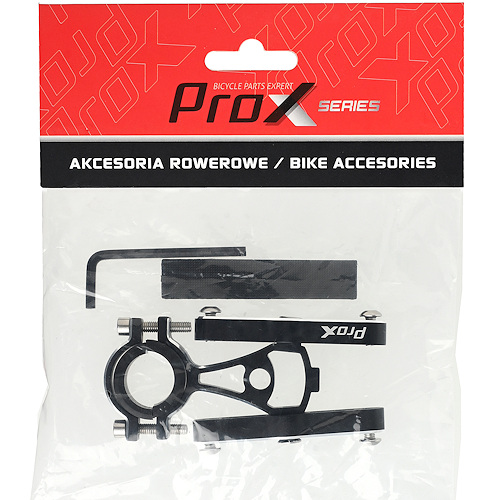 • konstrukcja aluminiowa • na dwa koszyki bidonu, lub jeden • montowany na wsporniku siodełka (21-31.8mm) lub kierownicy (dla jednego koszyka) • w komplecie: klucz imbusowy 3 • waga: 88g • pakowanie: zawieszka ProX (105g)